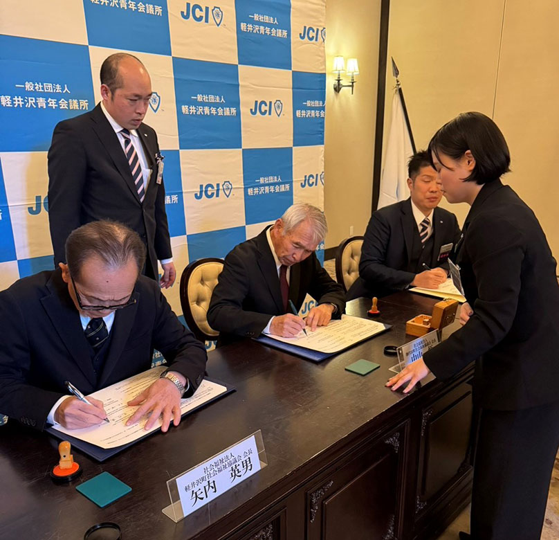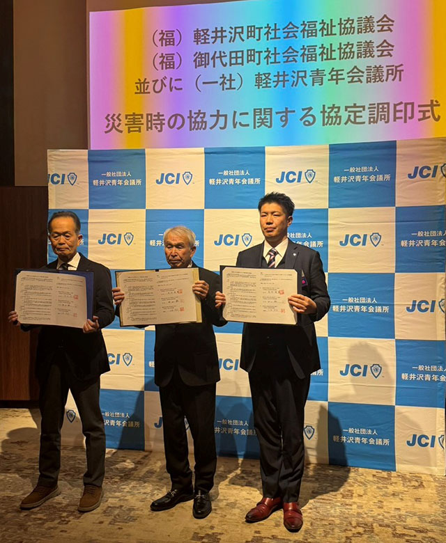 令和7年12月13日(土)、一般社団法人軽井沢青年会議所及び軽井沢町社会福祉協議会、御代田町社会福祉協議会の3者で、「災害時の協力に関する協定書」に調印しました。