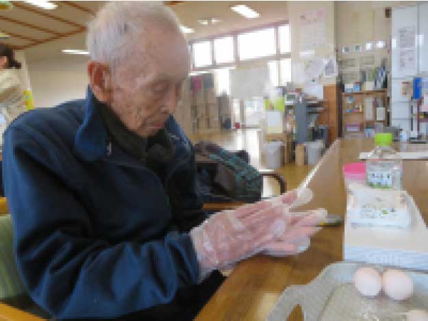 ハートピアみよたのデイサービスでは、1月5日(火)に馬瀬口区のつくしクラブの皆様のご協力のもと、まゆ玉づくりを行いました。