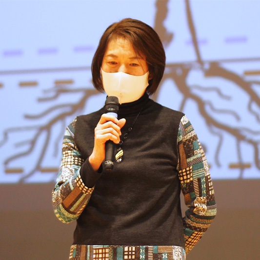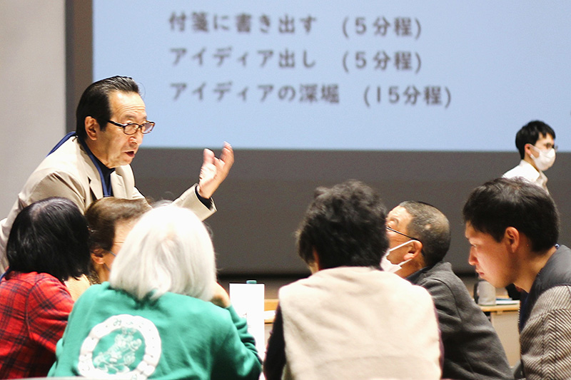 前段では山ノ内町つつみ住民活動センター運営委員会委員長の高相美智子氏をお招きし、山ノ内町わくわく商店街の事例報告をしていただきました。また、「参加者に楽しんでもらうには、『自分たちボランティアも楽しむことが大切』で、無理をしないこと」というメッセージを残されました。