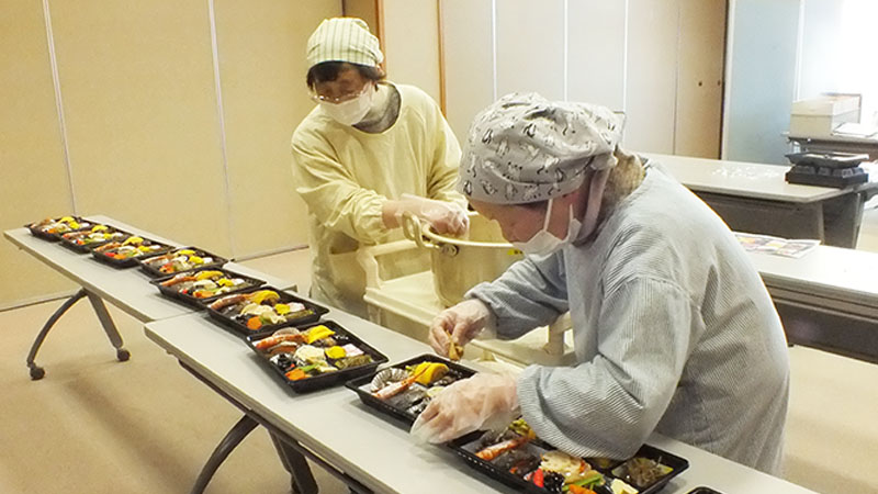 公園のごみ拾い、施設訪問交流活動、一人暮らし高齢者やおせちづくり、配達等地域事業や交流に参加するとともに、できる限りでのお手伝いを行っています。