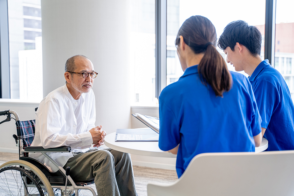健康状態のチェックや生活のお悩み、介護のお悩みなどをお聞きしております。