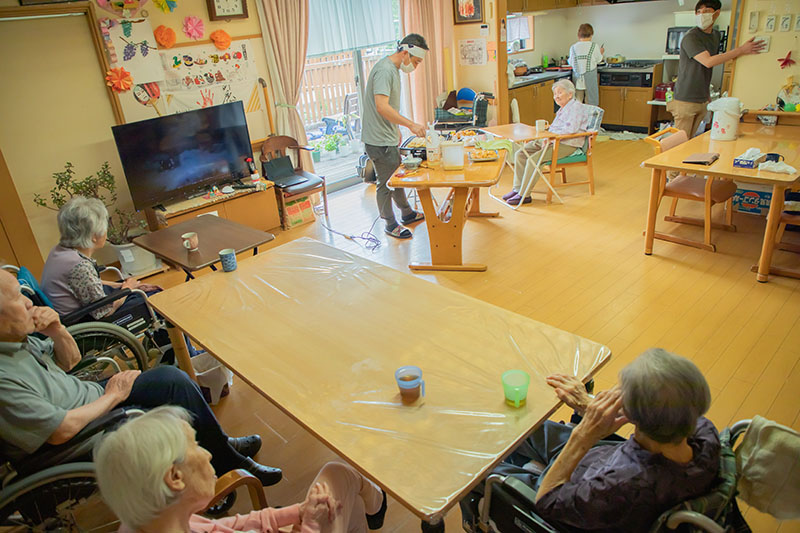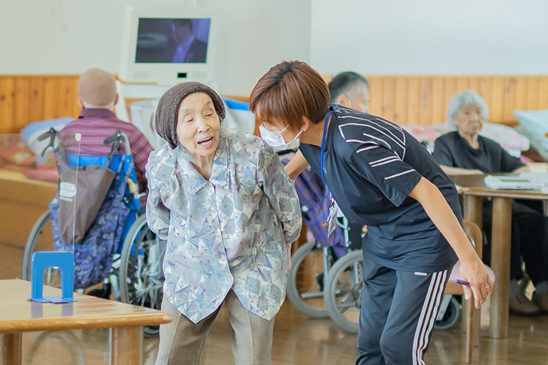 利用者が在宅生活を送る為に、デイサービスに通い、食事や入浴・排泄などの日常生活上の支援や、生活機能の向上のために機能訓練・体調の変化などへのアドバイスを行っています。