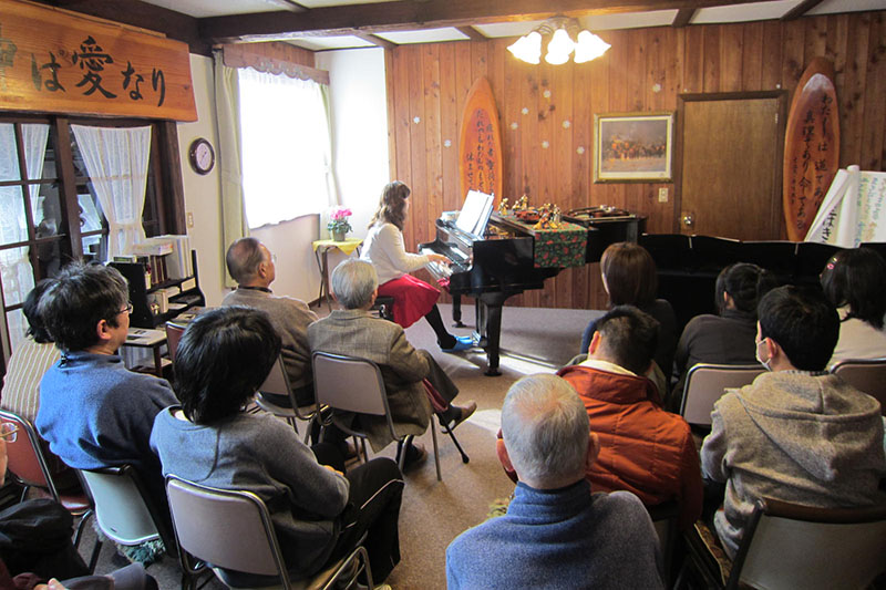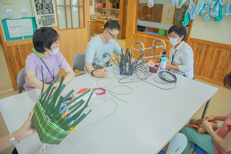 作業所では仕事をするだけでなく、調理実習や軽スポーツ、町の事業(音楽療法)への参加、お花見や日帰りバスハイクなど、様々な行事を実施することによって、利用者間の交流を活性化し、社会参加への機会を増やしています。