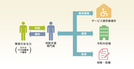 当事業所の相談支援専門員は、障害をお持ちのご利用者様、ご家族様からのご相談をお聴きした上で、より自立した日常生活や社会生活を送ることができるよう、助言や情報提供等をいたします。 また、必要に応じ関係機関等と連携を図っていきます。