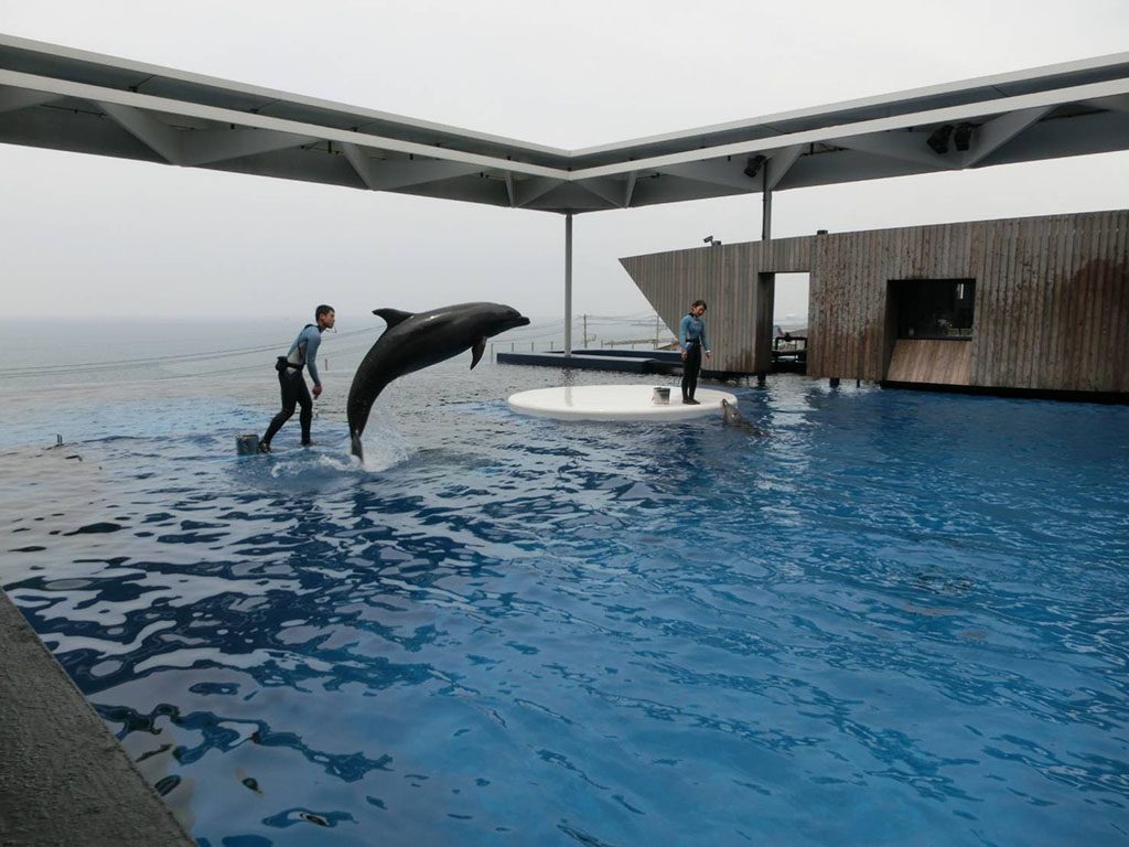 12:40 イルカショーを観覧。水しぶきを浴びてぐっしょりに。(笑)